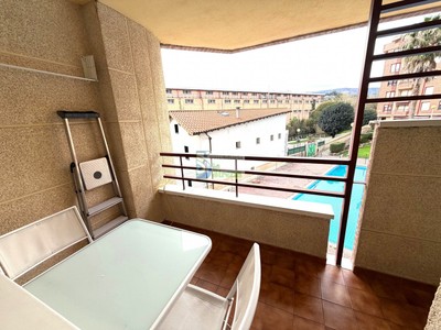 Urbanización con piscina comunitaria, jardines y vestuarios.